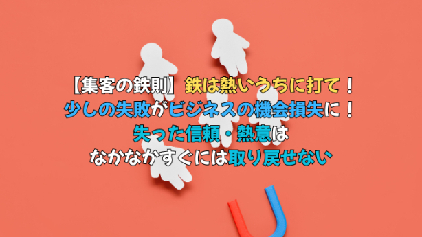 【集客の鉄則】鉄は熱いうちに打て!少しの失敗がビジネスの機会損失に!失った信頼・熱意はなかなかすぐには取り戻せない