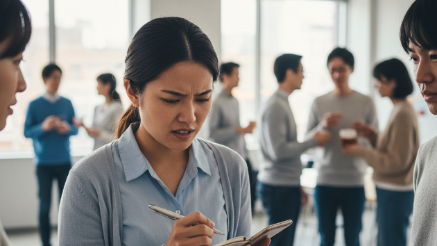 誰もが名刺を交換し、短い会話で終わる中、彼女は思った。