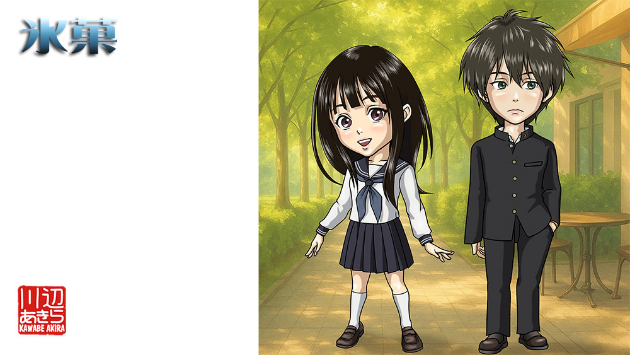 「氷菓」より折木奉太郎くんと千反田えるちゃん。
