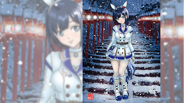 雪の参道とウマ娘風コスプレ ― 完成イラスト紹介。