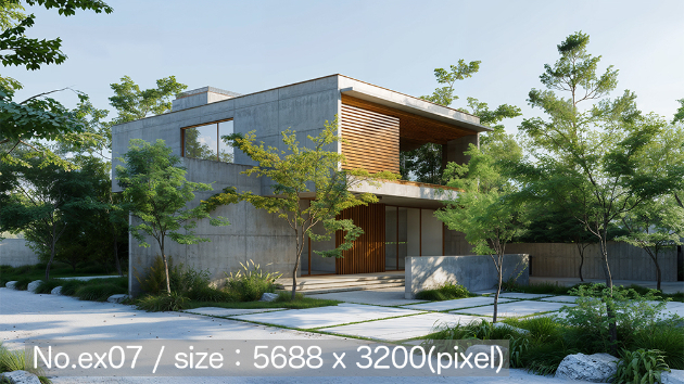 外観パース画像販売|コンクリート打ち放し住宅|No.ex07