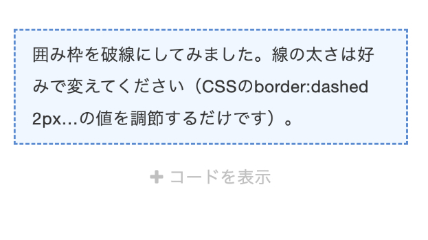 そこで、囲み枠のデザインをググってみると、ネット上にはたくさんのデザインが公開されていて、HTMLとCSSをコピペするだけでとても簡単に実装できるようになっています。