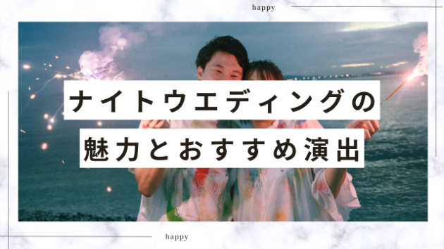 昼間とは全く違った雰囲気を楽しめるナイトウエディングは、ゲストにも喜ばれること間違いなし。幻想的でロマンティックな空間を演出し、感謝の気持ちを伝えましょう。ナイトウエディングの魅力を知り、自分たちらしい特別な結婚式を挙げてくださいね♪
