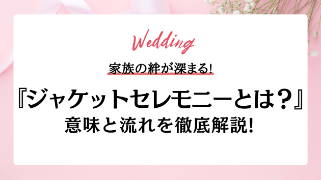 今回は、ジャケットセレモニーの意味や流れ、お願いする相手、実施時の注意点まで、これから結婚式を迎えるカップル必見の情報を詳しくご紹介します!