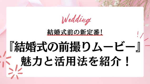 今や前撮りは、結婚式前の定番となり、着る予定のない和装やドレスを着て「ウェディングっぽい写真」を残す大事なチャンス。でも、ただの写真だけでは物足りないという方には、ムービー撮影が大人気。今回は、前撮りムービーの魅力と、その活用法についてお伝えします。