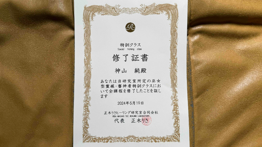 先日、日本式降霊術の4年目の修業が終わり、正木りさ師匠から4回目の卒業証書(特訓クラス)をいただきました。