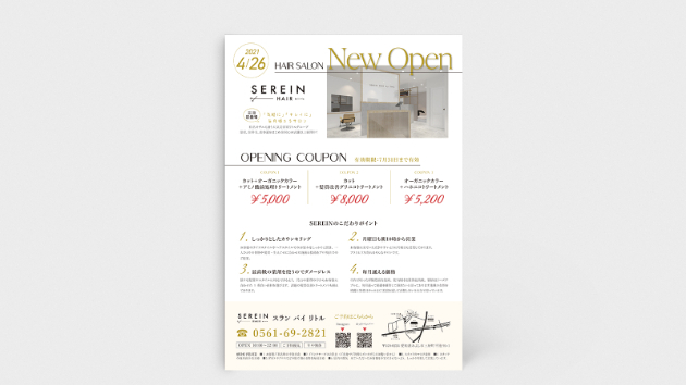今回は4月26日に新規出店されるということで、オープン告知を目的としたフライヤーになっています。