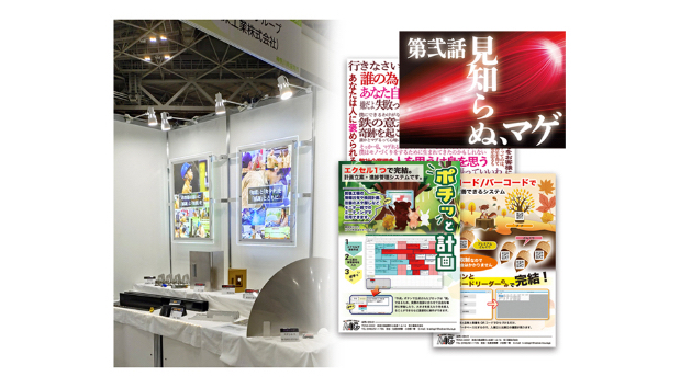 昨年に続いてのリピートご依頼の企業様の展示会制作物など。LEDパネルの連作と共に新製品の案内用手配りちらし他、各種の制作品一式をご提供しました。コンセプト「かっこいい」「かわいい」等の方向性でお迷いの方も是非ご相談くださいませ。(^-^)/