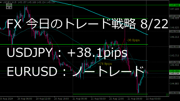 昨日は前日安値を下抜けたが、フェイクになったところでロングエントリー。146.0の戻り目の到達でイグジット。+74.9pips