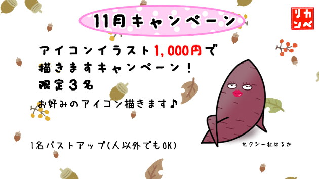 11月3名様限定で1,000円でイラスト描きますキャンペーンはじめました!