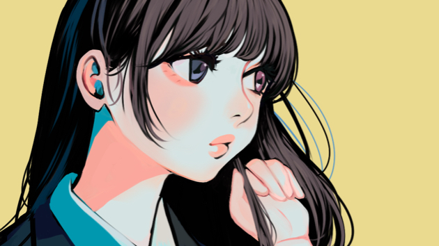 前回のピンク背景と似たような黄色背景の女の子です。