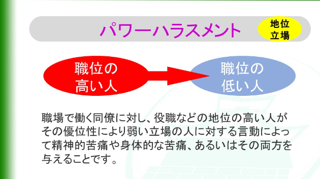 日からハラスメントの例をおくつかお話します。最初はパワーハラスメントです。