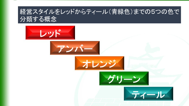 組織論の初めに、2014年にフレデリック・ラルー氏が『Reinventing Organizations』の中で紹介した企業の経営スタイルをレッドからティール(青緑色)までの5つの色で分類する概念から紹介します。