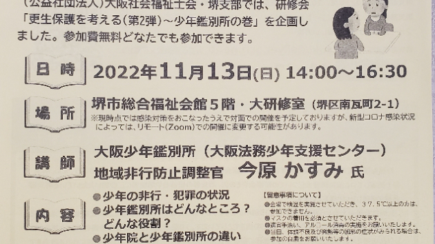 大阪社会福祉士会堺支部研修会『更生保護を考える (第二弾 少年鑑別所の巻)』