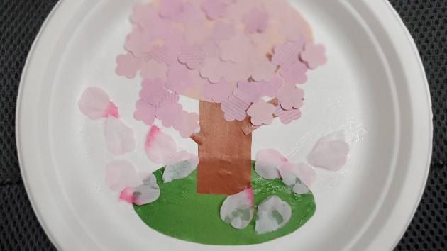 今月の末は「桜の木をつくろう」というタイトルで紙皿を台紙にして「桜の木」を作る予定にしています。