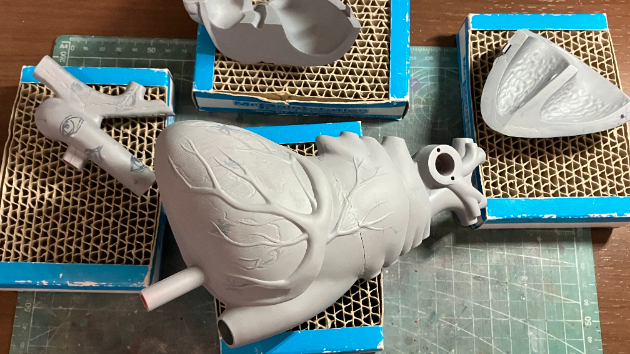 当キットでは、心臓の2か所が取り外しできる仕組みとなっているため、取り外し可能なブロック以外を1つに接合するようにします。また、心臓の管にあたるパーツも塗装の都合上、別パーツとして扱うようにします。
