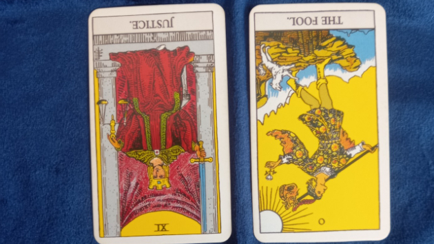 まず結果ですが、正義のカードの逆位置が出ています。
