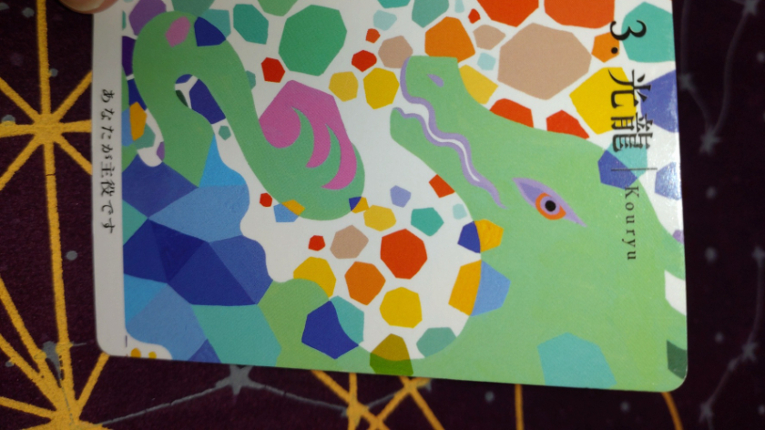『生命力の象徴である光龍は、常に私たちのそばに寄り添って「できるから大丈夫!」と励まし、勇気づけてくれる存在。今後、光龍の放つ光が燦々と降り注がれるので、スケールの大きい出来事が舞い込むなど、思ってもいなかった新たな展開がもたらされることをあらわすカードです。