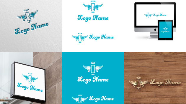 天使の羽、注射器をモチーフに優しい医療をイメージしたクールでカワイイロゴです。