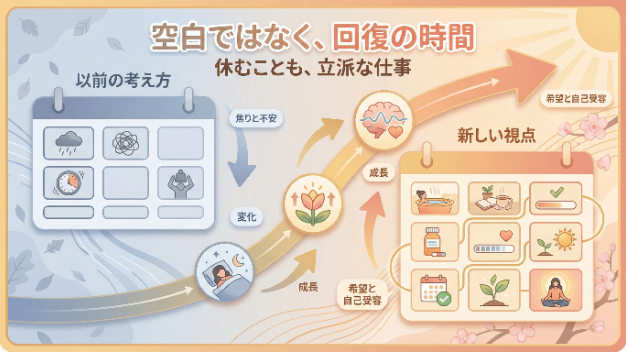 休息が必要な時に休むこと。生活のリズムを取り戻すこと。それは決して「何もしていない」のではなく、次のステージに進むための大切な準備期間です。