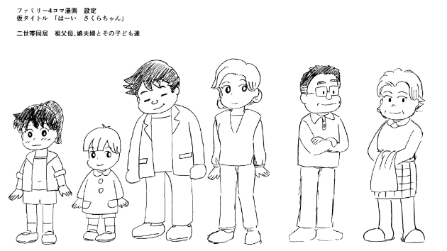 とあるところから4コマ漫画のサンプルを出して欲しいとの要望を受け、設定を考えサンプル用に4本描きました。先方とは3年に渡っての繋がりの中、新聞4コマ向けの依頼なので基本「ファミリー4コマ漫画」です。