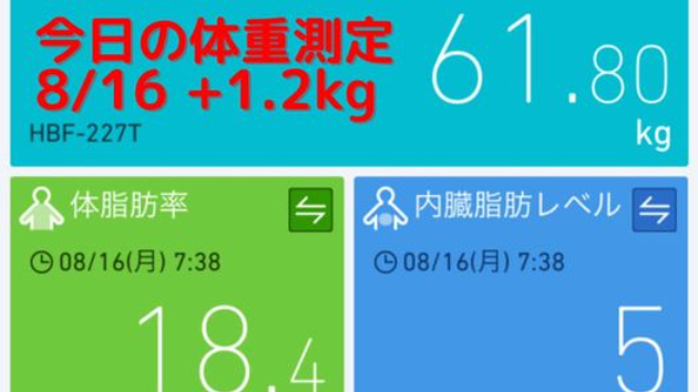 今日の体重測定8/16