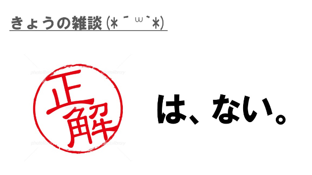 ということは本当の正解はいつまで経っても見つからないのかもしれないな〜。しかし、だからこそ常にその瞬間の正解に近づけようという気持ちになれる。