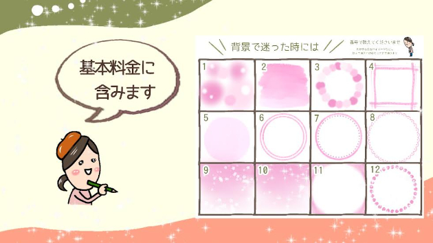 尚、こんな感じの背景でしたら、基本料金に含まれますので、