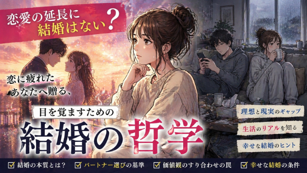 この記事は、恋愛に悩み、それでもいつかは結婚をと望むあなたに向けて書いた【結婚の哲学】です。 なぜ恋愛と結婚は別物なのか。結婚する上で、本当に理解しておくべき重要な要素とは何なのか。