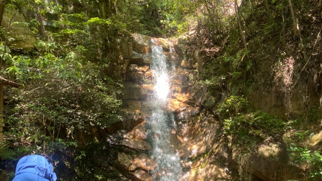 森を抜けた後に、滝。