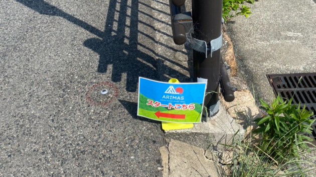 「START」と書かれたのぼり旗とともに、スタッフの方が待機している。