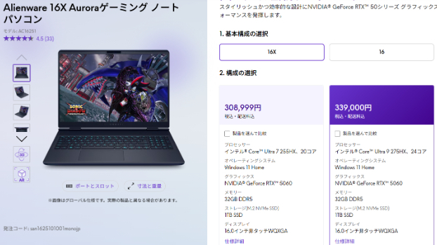 モデルは同じAllienware 16X Aurora。