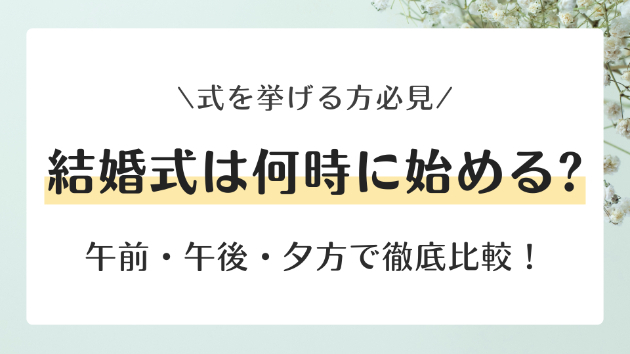 この記事では、結婚式のスタート時間の基礎知識から、各時間帯(午前・午後・夕方)のメリット・デメリットをわかりやすく比較。
