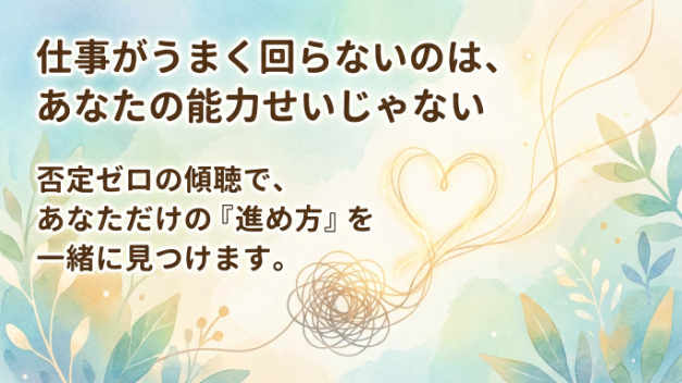 あなたの話をじっくり聞いて、一緒に「自分のやり方」を見つけていくお手伝いがしたいと思っています。