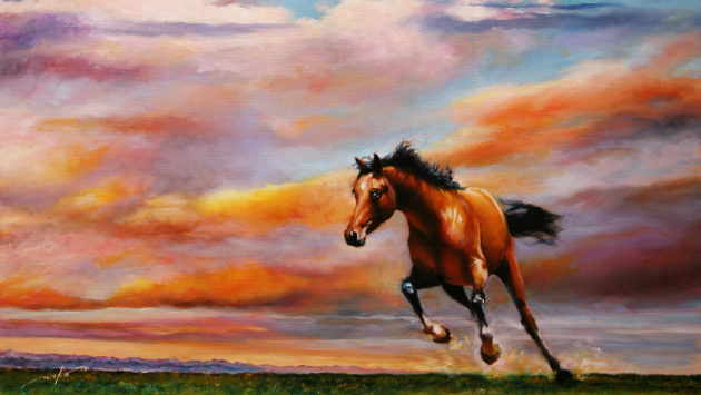 空と馬を描く☆油彩画【颯の如く】〜LIKE A GALE〜