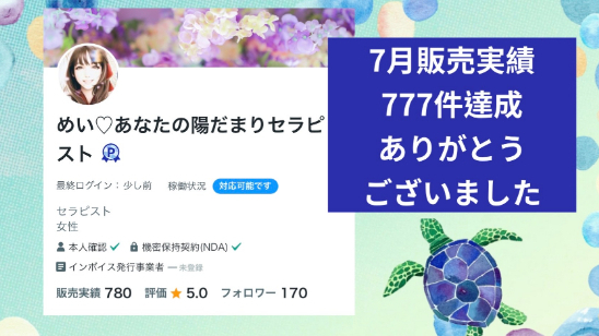 ここまで来るのは、私の場合、有名出品者さんと違って、じわじわと頑張るタイプなので、遠い道のりでしたし、『お役に立ちたい💝』気持ちの強さから、ココナラでのご依頼が全くない日が続くと、気持ちだけが空回りしてしまう事もありました。。