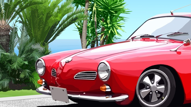 背景を変更したのでカルマンギアのドア付近に映った他の車も消し
