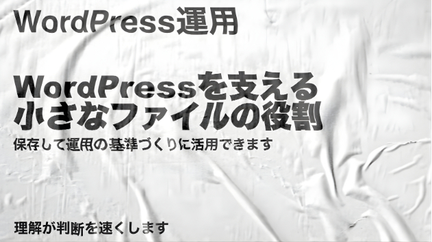 小さなファイルはサイトの人格を形づくる名脇役です。wp config phpは存在の根幹を守りhtaccessは振る舞いを決めrobots txtは意思表示を担いxmlrpc phpは現在地の見直し対象でありmaintenanceは健全な合図です。php iniとuser iniは限界値を定めreadme htmlやlicense txtは露出管理の対象です。役割を知り変化を観測し意図をもって扱えば日々の判断は簡潔になりサイトは静かに強くなります。