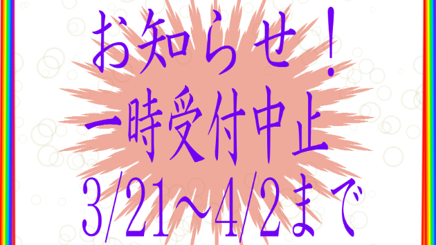 3/21~4/2まで一時受付中止、規制の状況を把握次第ご依頼受付けの再開とさせて頂きたいと思います。