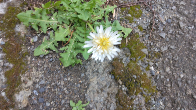 地面から、それも石かコンクリートの混じったところからか、逞しく生えて咲いているタンポポの花。散歩していて、ひょっと下に目を向けたら気付いた。英語で、タンディライオンと言うらしい。ライオンのたてがみに葉が似てるからだとか?ニューミュージックソングで覚えた言葉だ。乱高下する気温の中で、三月に入ったが、私たち人間も、逞しく咲こう!