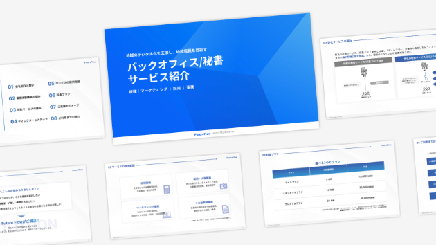 今回はバックオフィス秘書の新規サービス紹介資料のデザインを担当させていただきました。