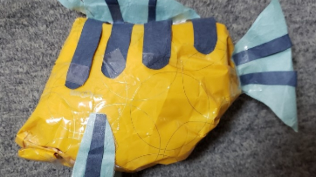 全体が黄色で青い縞模様の目がクルッ丸い魚の男の子