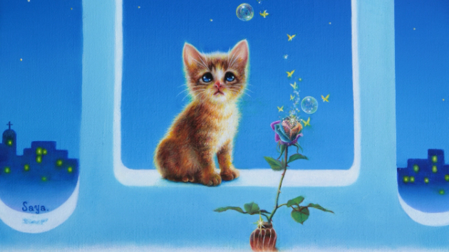 仔猫と虹薔薇を描く☆画家SAAYA【月夜のセレナーデ】〜SERENADE OF MOONLIGHT〜