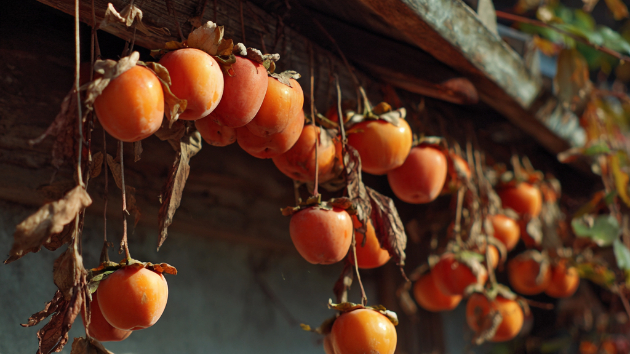 この言葉が、干し柿の表面にやわらかな光を与え、