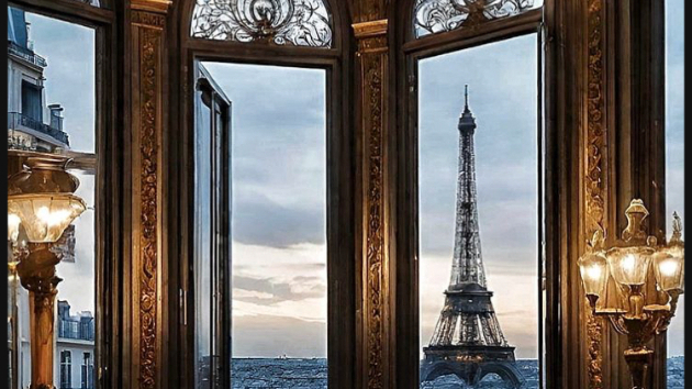 明け方の街を見下ろす 高い窓