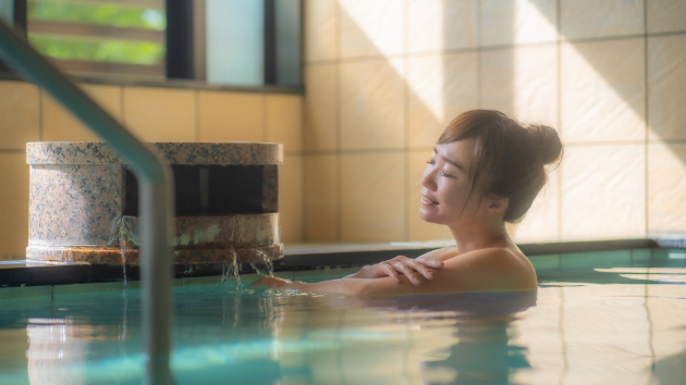 If you have long hairs, loop up your hairs not to put them into onsen.