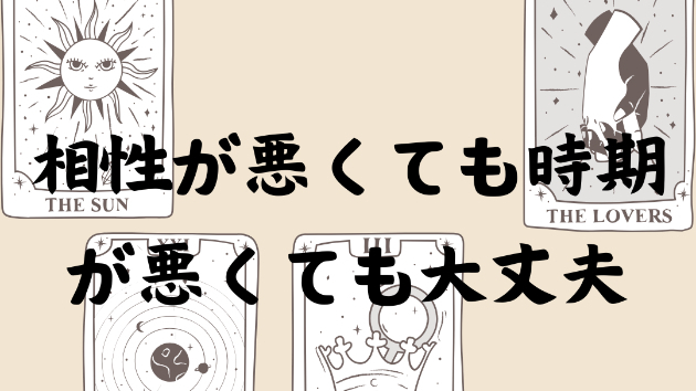恋愛の占い、結婚を意識した占いをするとき、お相手との相性は気になりますよね。そしていつ頃結婚できますか、という質問もよくいただきます。この方との相性はとても良いと出れば、お伝えするのも嬉しくて「最高の相性と出ています!!」なんて声高らかに言いたくなります。趣味が似ているとか、金銭感覚が似ているとか、守ってあげたいタイプと守られたいタイプも相性がいいですね。