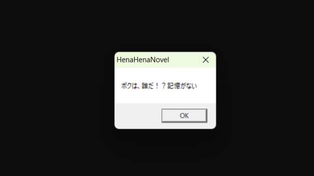 {PRINT,"ボクは、誰だ!?記憶がない",0,0},