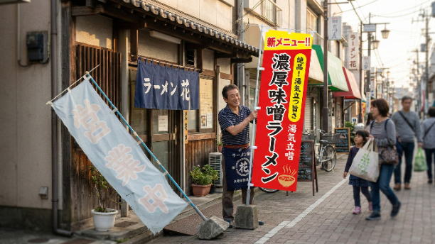 そう感じたとき、まずチェックしてほしいのがお店の前に立っている「のぼり」です。