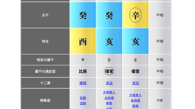 こういった生まれの四柱推命の命式鑑定を、ココナラ内で販売しております。